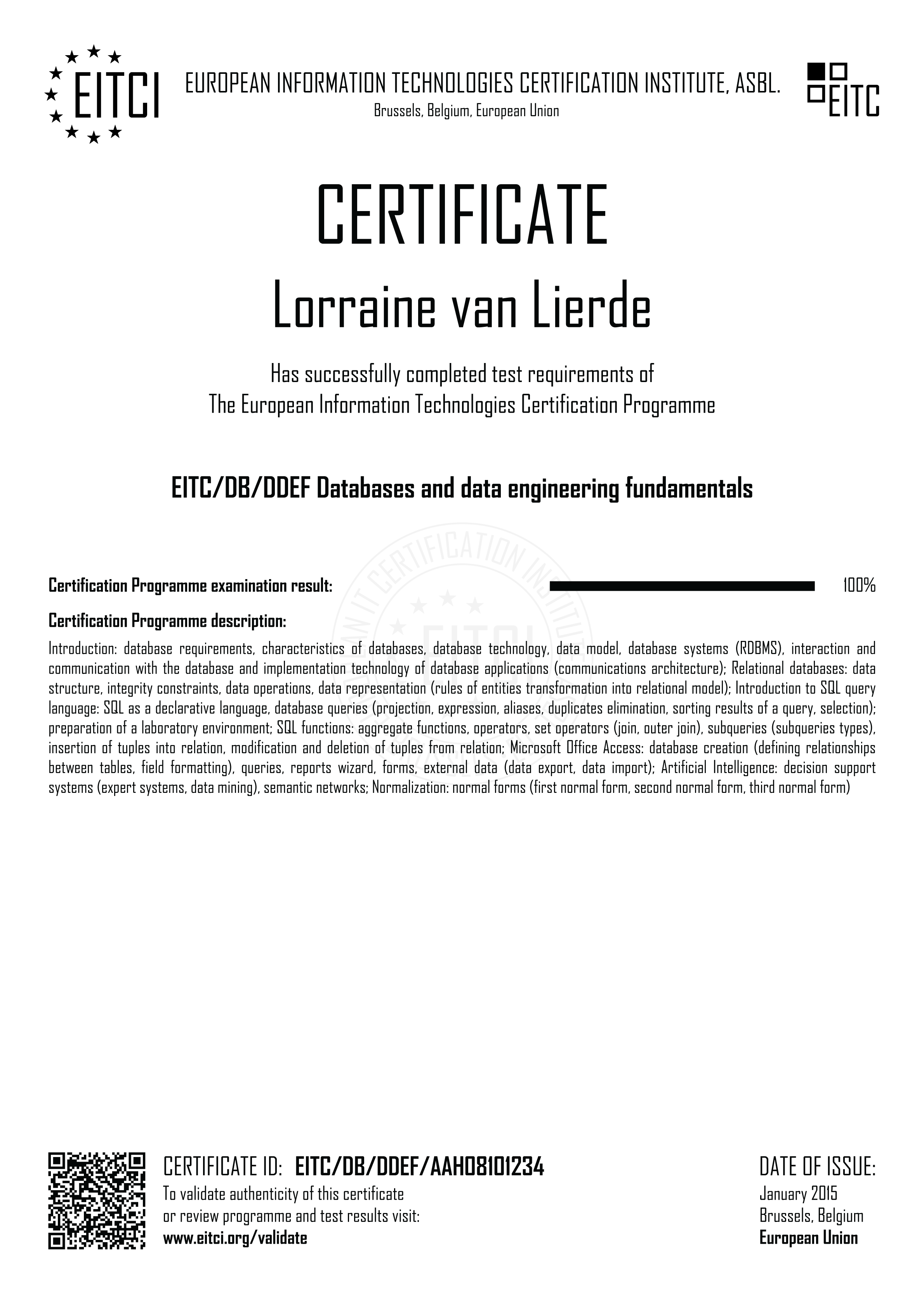 - یورپی IT سرٹیفیکیشن آپ کی پیشہ ورانہ ڈیجیٹل مہارتوں کی برسلز، EU سے باضابطہ تصدیق کرتا ہے۔